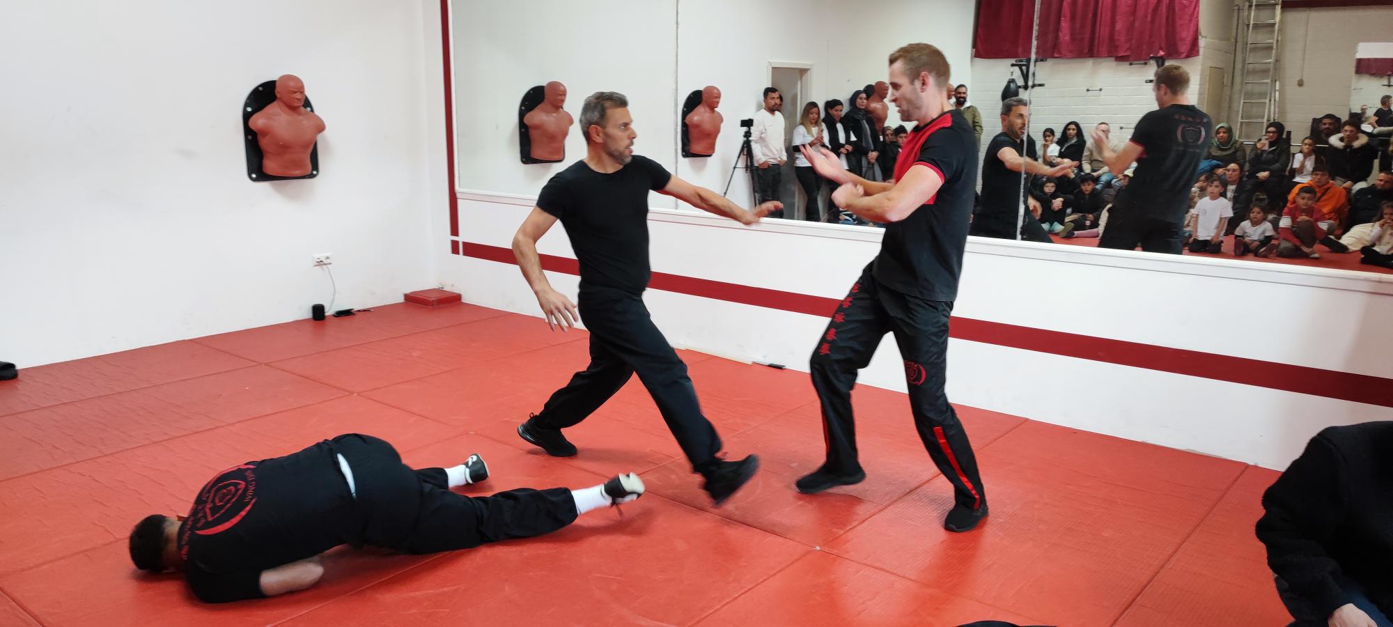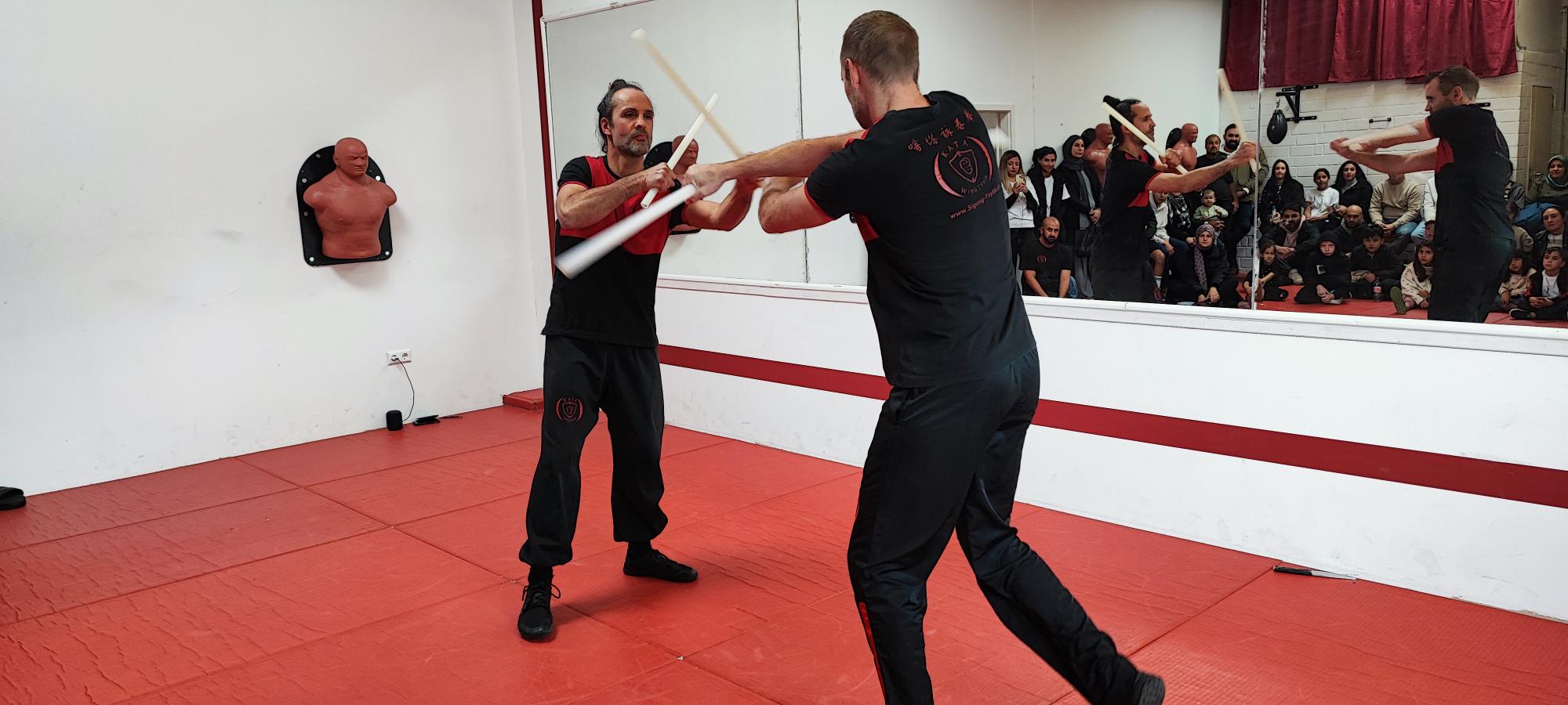 Wir stellten unser System im Detail vor und erklärten die verschiedenen Distanzen im Wing Tsun – von der Langdistanz bis zur Nahdistanz – und wie sie im Training und in der Selbstverteidigung ineinandergreifen. Ein besonderes Highlight waren die Vorführungen mit Sigung Teyfik und seinen Schülern, die eindrucksvoll zeigten, wie fließend, präzise und effektiv Wing Tsun in der Praxis angewendet wird.